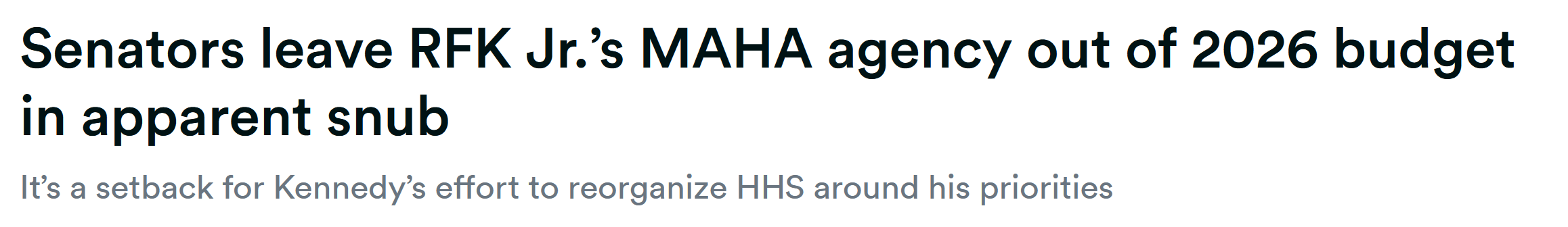 Almost no one is aware that RFK Jr.’s HHS restructuring bill got shut down in appropriations with a vote of 26-3 to move on without his changes.